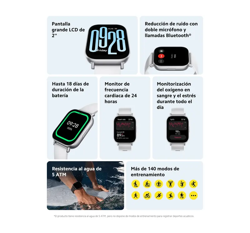 La pantalla LCD resistente reflejos del Redmi Watch 5 es un acierto, se ve bien en cualquier entorno.
